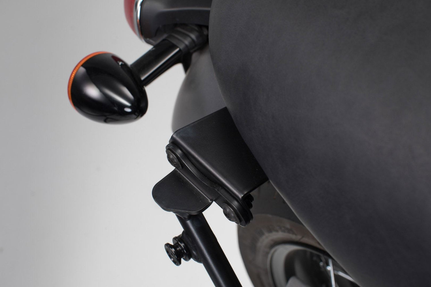 The adapter plate enables the use of the SLC side carrier without passenger grip bar. The bike-specific adapter plate allows easy and secure mounting on the original breakpoints on the bike and serves as a mounting socket for the SLC side carrier. The circumferential pillion rider grab rail is completely omitted.