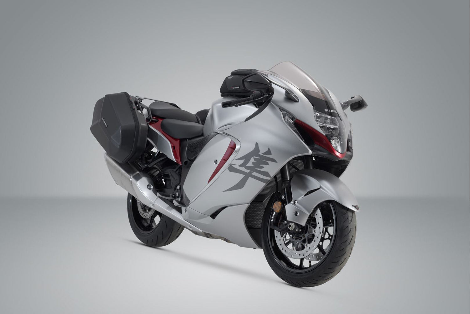 The AERO ABS side case system consists of the appropriate PRO side carriers for the Suzuki GSX 1300 R Hayabusa and the two plastic cases.