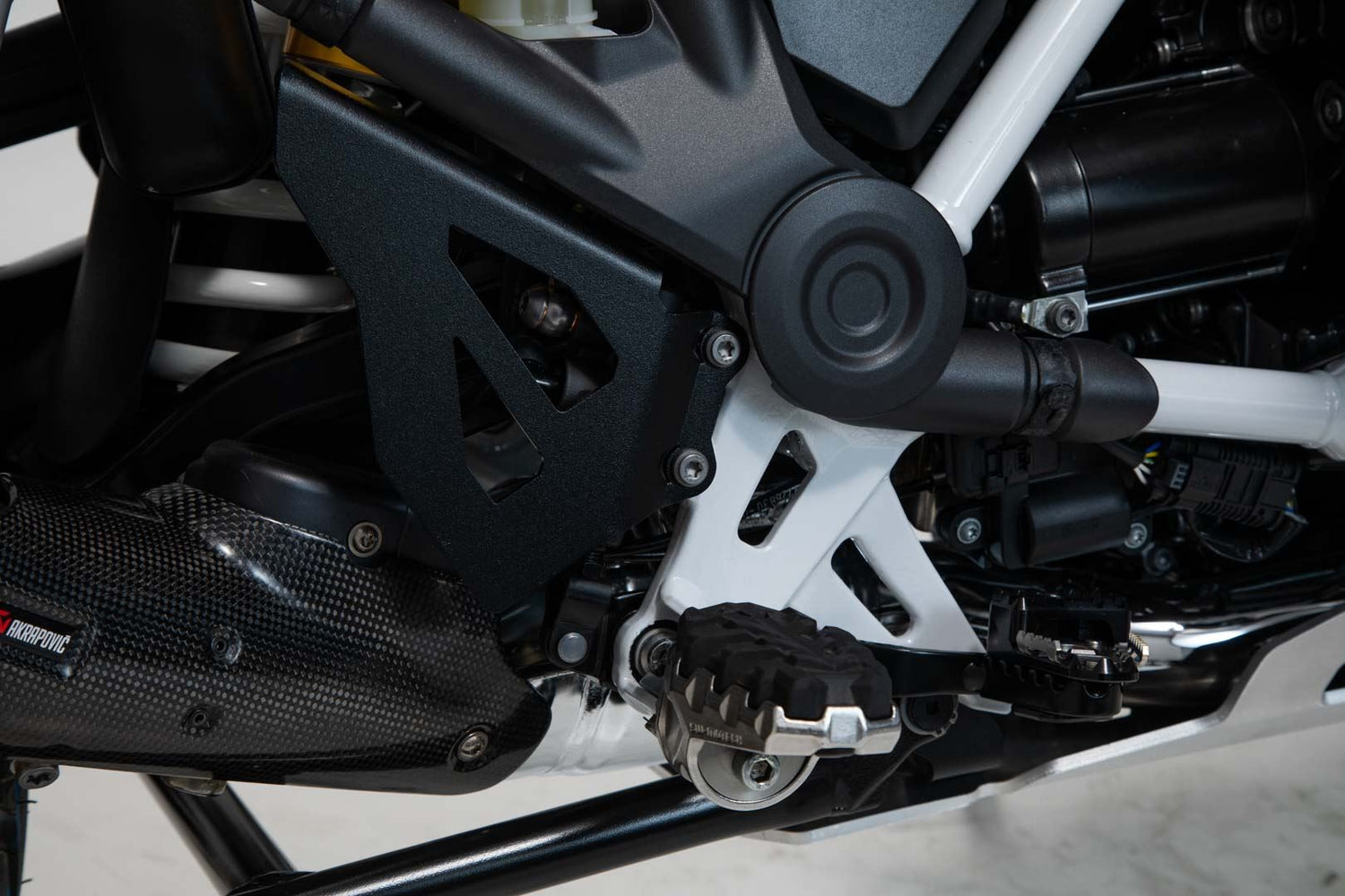 The folded and laser-cut aluminum protector protects the foot brake cylinder - even against unwanted boot contact.