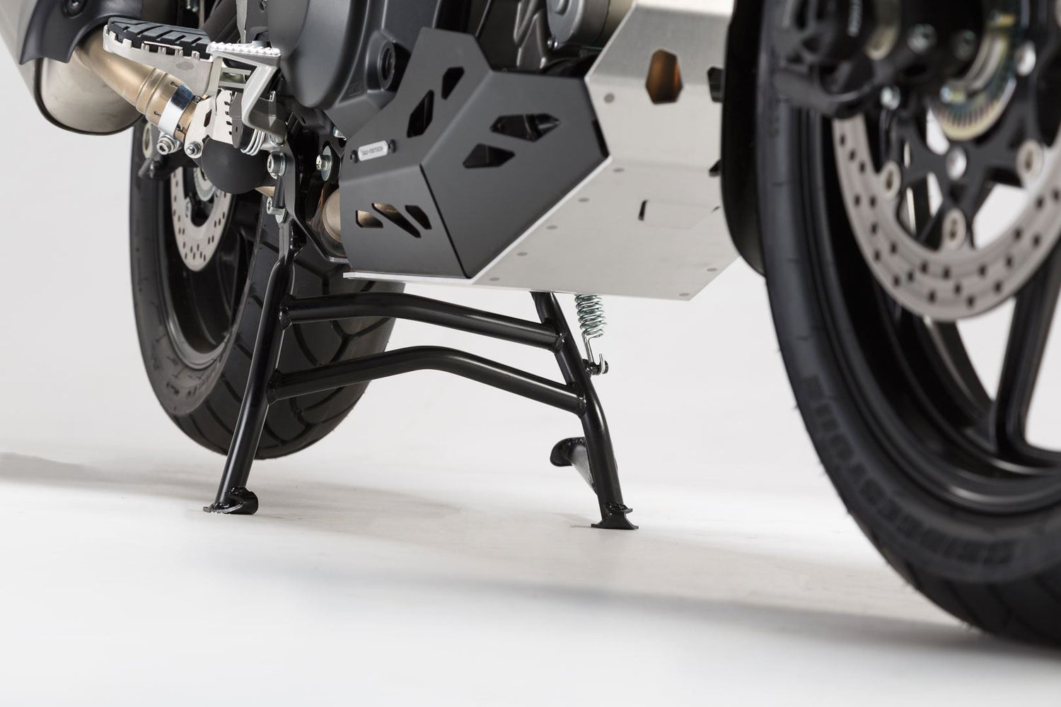 The indestructible, yet lightweight steel tube construction offers the best angle and ground clearance, makes it easy to jack up and provides stability - whether it's during maintenance or on the road. In most cases, you will no longer need to buy an additional swing arm stand. During long downtimes in the winter months, the centerstand helps take the load off your tires.