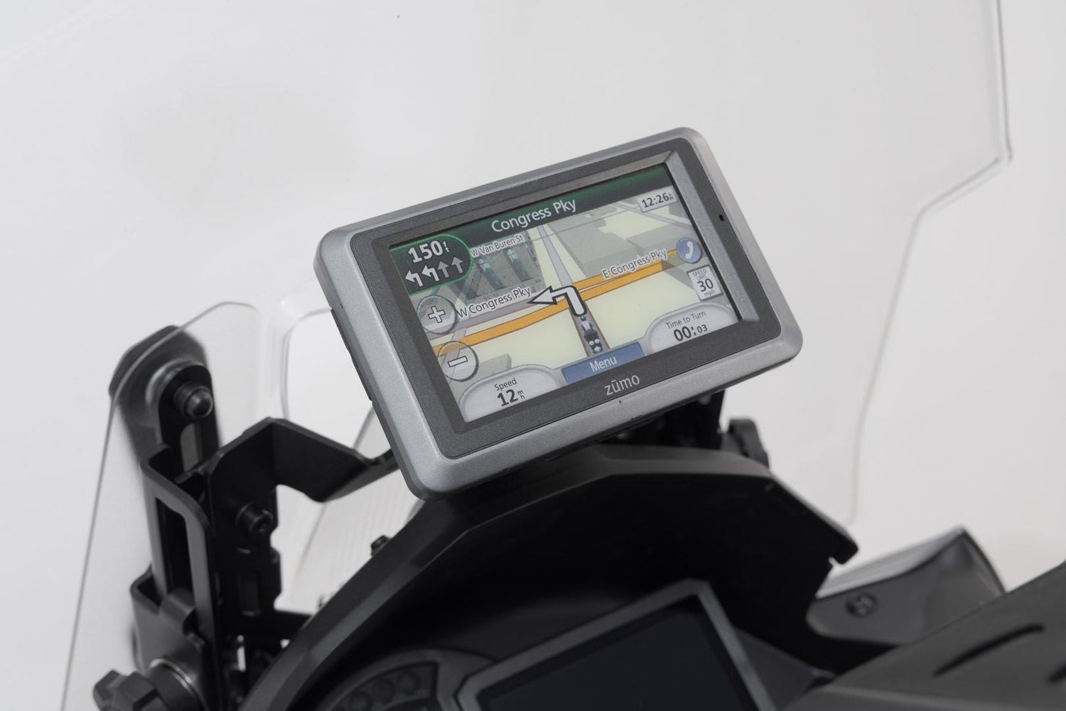 In order to achieve optimal positioning, a powder-coated steel plate ensures the stable attachment of the GPS mount on original attachment points in the cockpit. Clever positioning, vibration dampening and easily removable: The bike-specific GPS mount combines all of these features. The pivotable holder can be removed in an instant and its universal drill-hole pattern allows the attachment of many current models of GPS devices as the Navi Case Pro device cases and smartphone hardcases from SW-MOTECH. Its integrated shock absorption protects your device against vibrations.