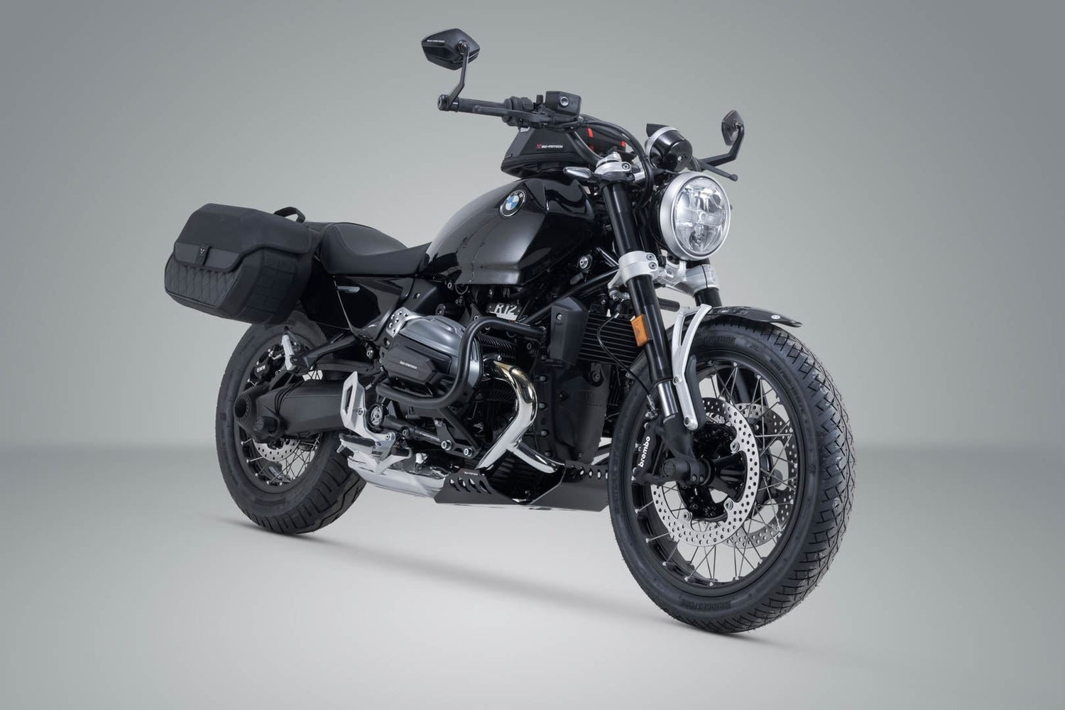 This LH side bag system was developed by SW-MOTECH specifically for the BMW R12. It consists of an LH1 on the right side and the matching carrier for the motorcycle. The size of the bag allows for an individual exhaust configuration.