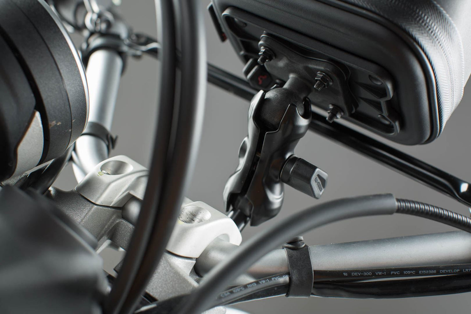 The pivotable and rotatable socket arm is used for device mounting of GPS device, camera or smartphone. It is designed for 1" diameter ball adapters.