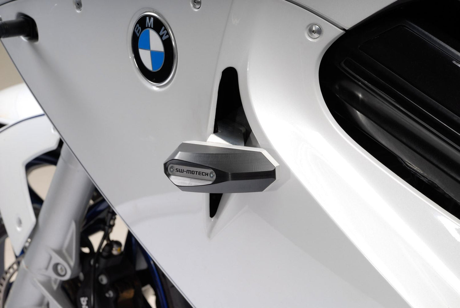 Frame crash pads provide additional protection in the event of a fall. The shape, surface and material of the pads provide excellent sliding properties to reduce damage to the motorcycle. The robust aluminium mounting bracket is easy to install, and the abrasion-resistant, CNC-milled slider pads are replaceable.