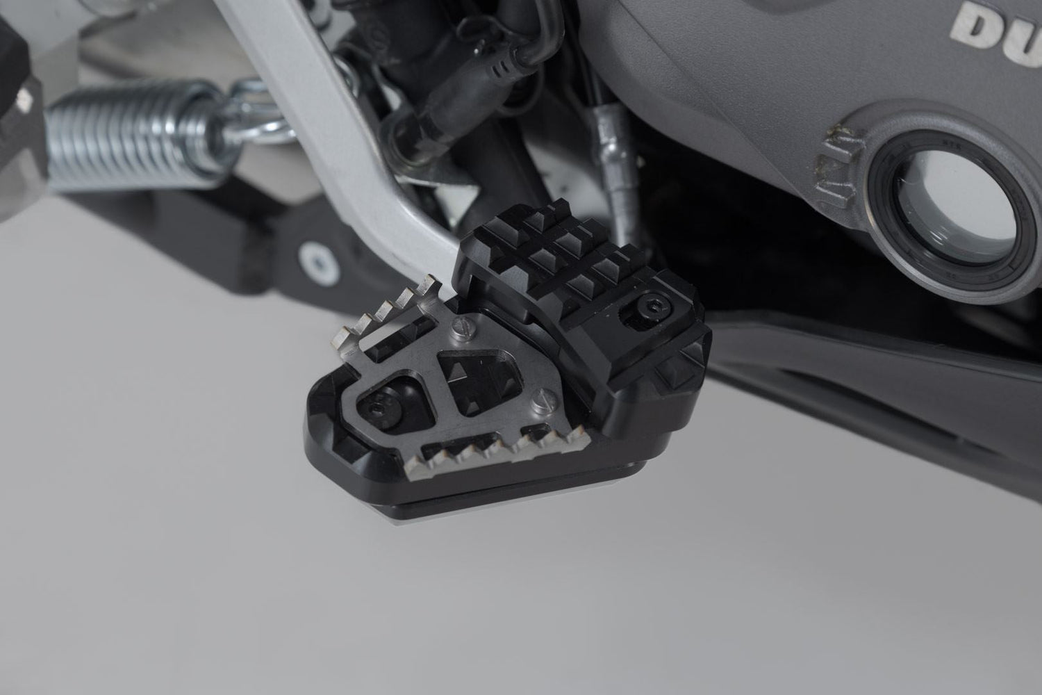Frame crash pads provide additional protection in the event of a fall. The shape, surface and material of the pads provide excellent sliding properties to reduce damage to the motorcycle. The robust aluminium mounting bracket is easy to install, and the abrasion-resistant, CNC-milled slider pads are replaceable.