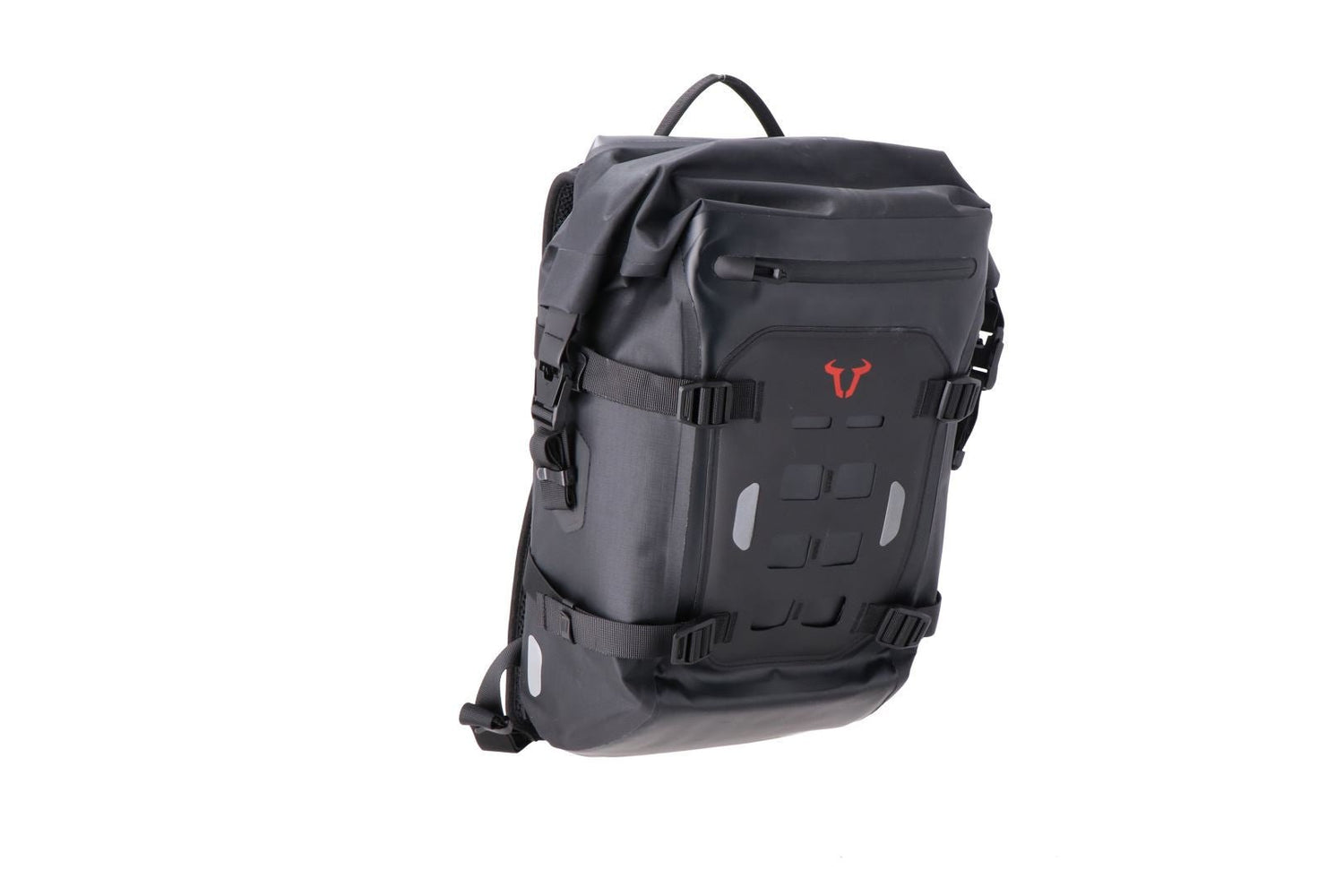 With the Daily WP, we have developed a high-quality motorcycle backpack that can meet all the challenges of everyday motorcycling. Its practical features ensure that your belongings are transported safely, comfortably, and dry. Perfect for commuting or long weekend trips. The waterproof main compartment with roll-top closure offers 22 liters of storage space, and thanks to the robust TPU material, your belongings remain protected even in heavy rain. You can easily store a 15-inch notebook and a tablet in the removable laptop compartment. The spacious front pocket with integrated key attachment offers plenty of space for smaller items. The padded carrying straps are adjustable in length, while the removable hip belt and the ergonomically shaped back padding ensure a high level of comfort. Thanks to a magnetic click closure, the chest strap can be operated even with the helmet visor closed. With the compression straps on the front, you can ensure that the Daily WP always sits firmly on your body, even with little load. Reflective details improve your visibility in low-light conditions.