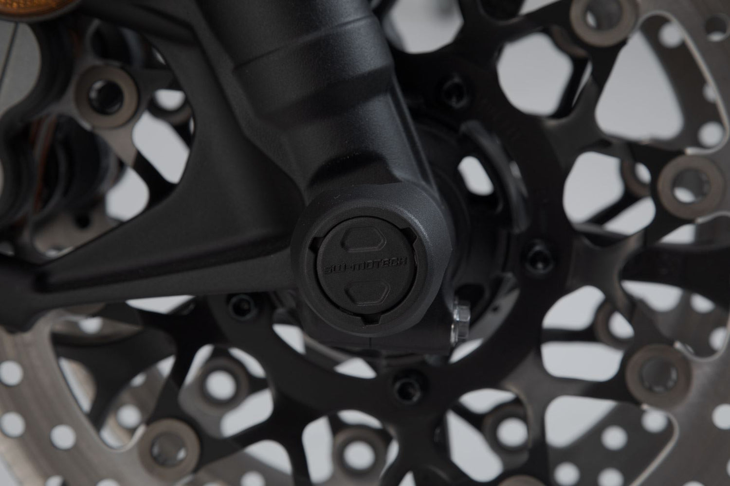 The front axle crash pads made of abrasion-resistant plastic protect the drive shaft from damage in the event of a fall. The smooth surface also provides excellent sliding properties. The polished bull logo in red adds a visual highlight to your motorcycle.